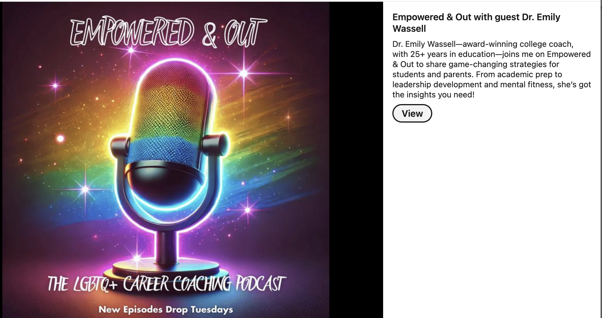 Join me as my friend, Dr. Emily Wassell—award-winning college coach, with 25+ years in education—joins me on Empowered & Out to share game-changing strategies for students and parents. From academic prep to leadership development and mental fitness, she’s got the insights you need!