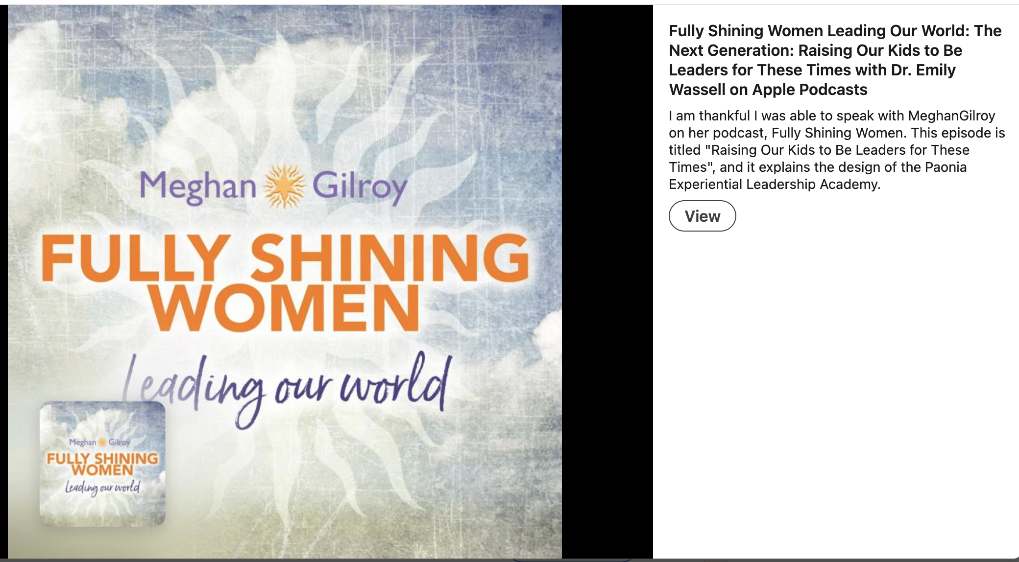 How do you educate our kids to be authentic vulnerable leaders who embody the change we wish to see in the world? What kind of leadership is needed for the coming decades and the next 7 generations? How do you find your calling? And what are the 8 areas of wellbeing that we all could benefit from practicing in our lives? This week I speak with Dr. Emily Wassell, a Fully Shining Woman who is educating the next generation of fully shining humans at her Paonia Experiential Leadership Academy. She is a thought-leader in the world of education and in the science of wellbeing - and she’s been an answer to my prayers!